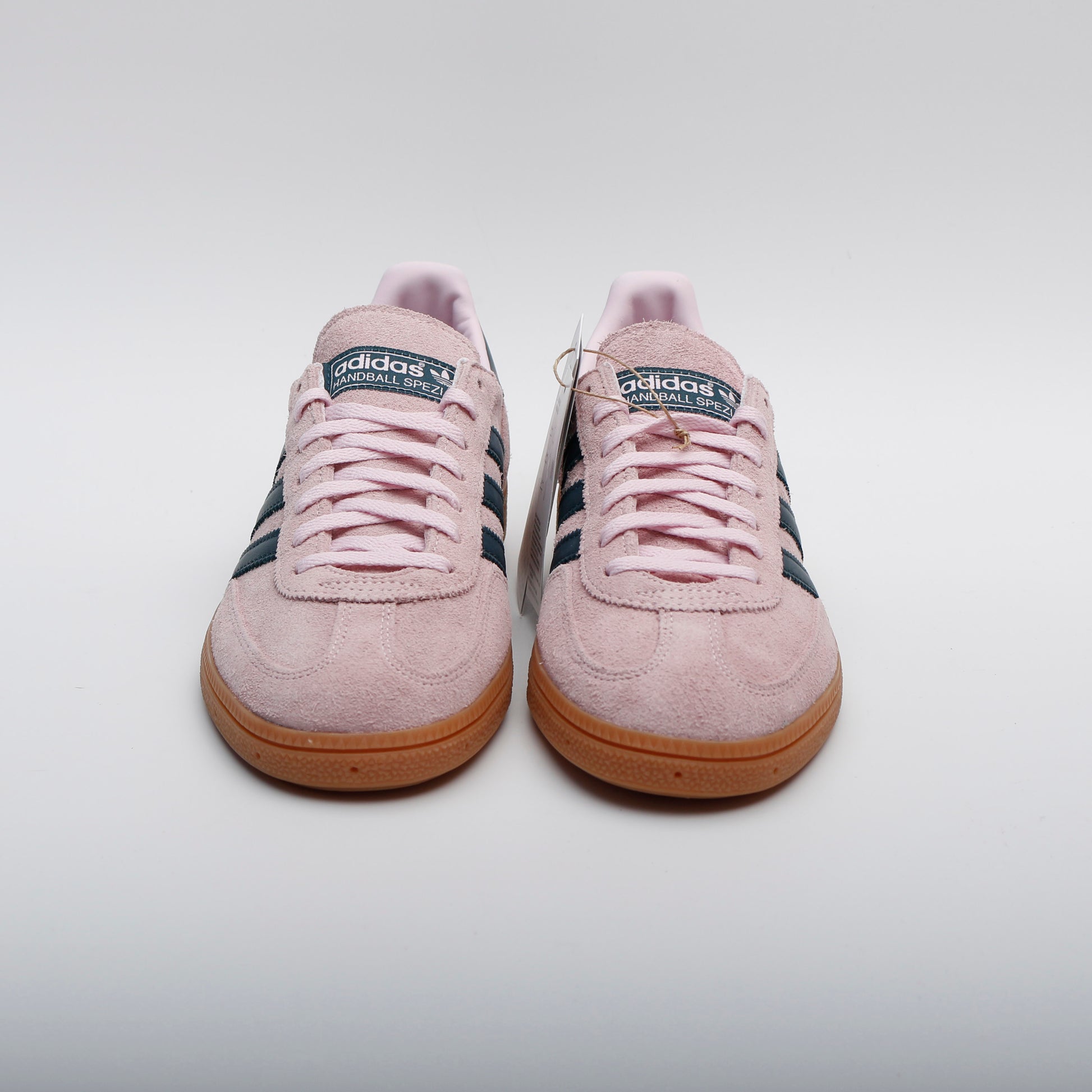 First introduced in 1979, the adidas Women's Handball Spezial arrives in a clear pink colourway. This iteration features the iconic T-Toe design, premium suede construction, and a vintage-inspired gum rubber outsole. The distinctive look of the adidas Women's Handball Spezial is completed with classic adidas branding on the tongue label, sidewall, midsole, and outsole.