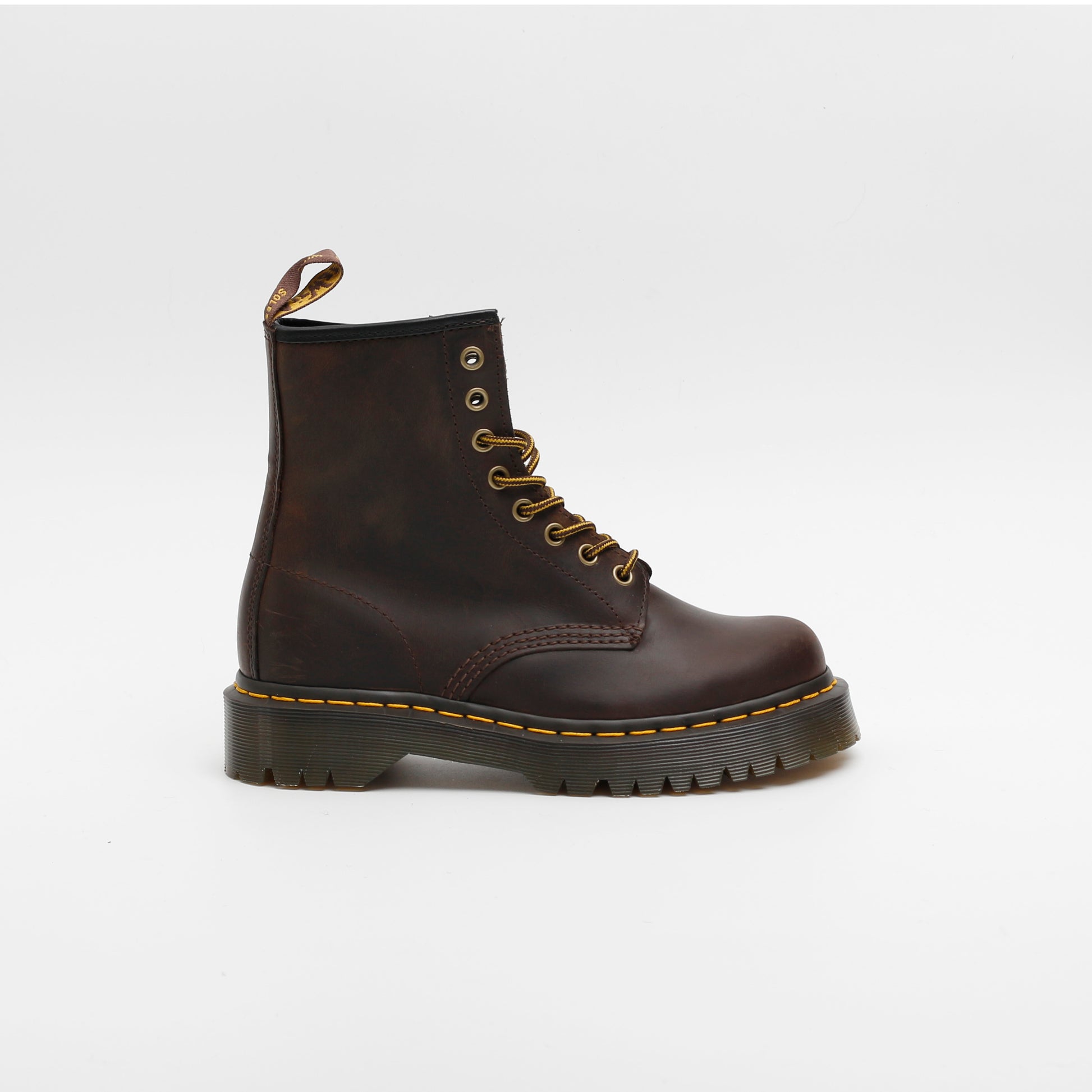 The Dr. Martens Crazy Horse leather comes with a rugged, worn-in look that only improves with age. These 1460 boots sit on a raised Bex sole, adding a bit of extra height and edge while keeping the classic DM’s versatility. Featuring 8 brushed eyelets on the Original DM’s silhouette, they’re finished with the iconic yellow welt stitching and signature heel loop.