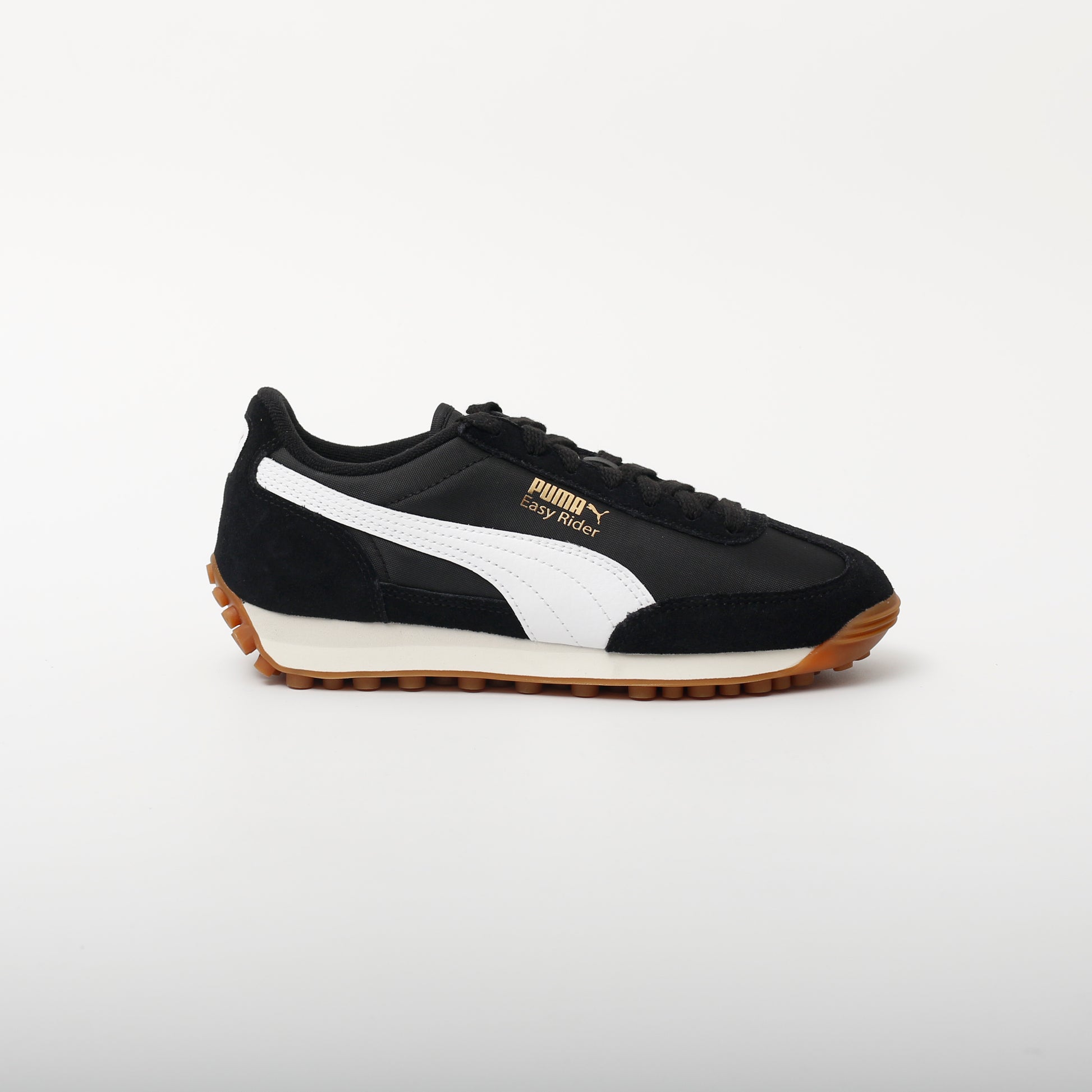 The PUMA Easy Rider was born in the late '70s, when running made its move from the track to the streets. Today it's back with its classic slim profile and vintage vibes intact in a classic black colourway. The style features a textile upper and suede overlays. This is a youth style but in larger sizes.