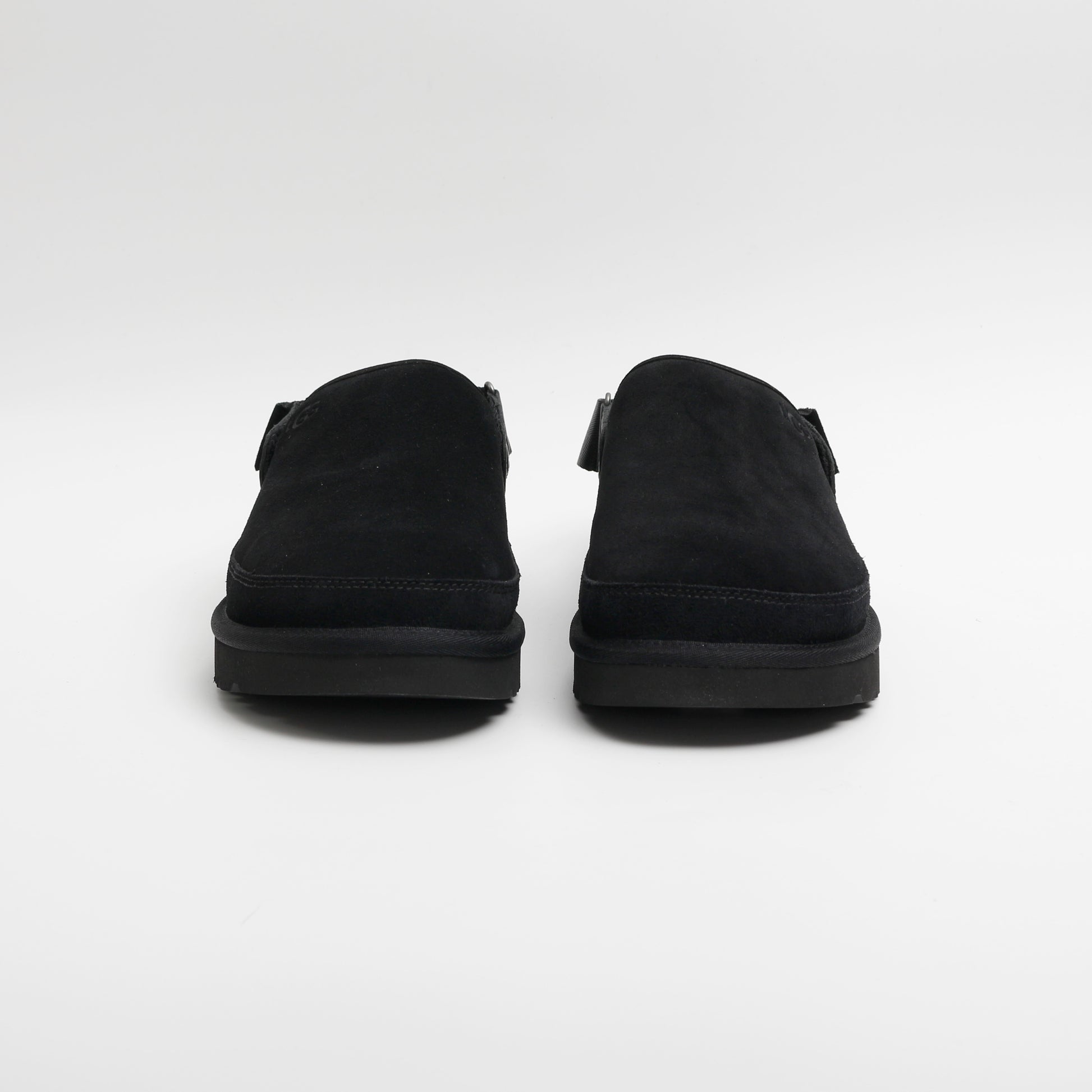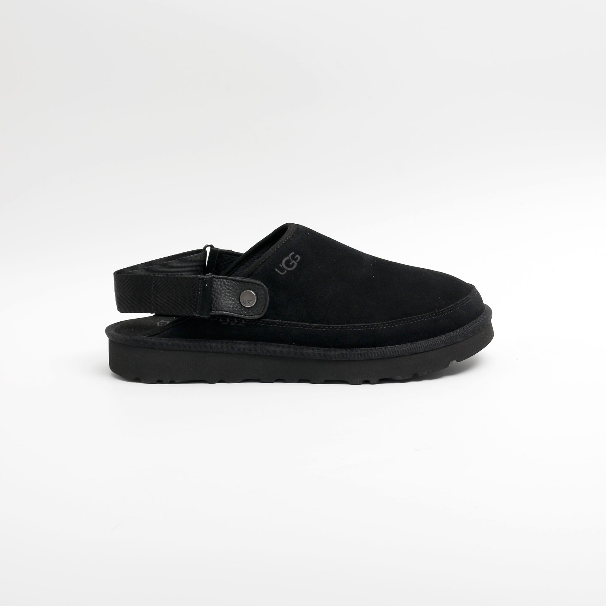 The Goldencoast clog by UGG. Featuring a black suede upper and adjustable strap this is the perfect mule to keep you comfy and cosy. A rubber outsole making these perfect for any surprise adventures. UGG branding on the front, sides and heel in black completing the look.